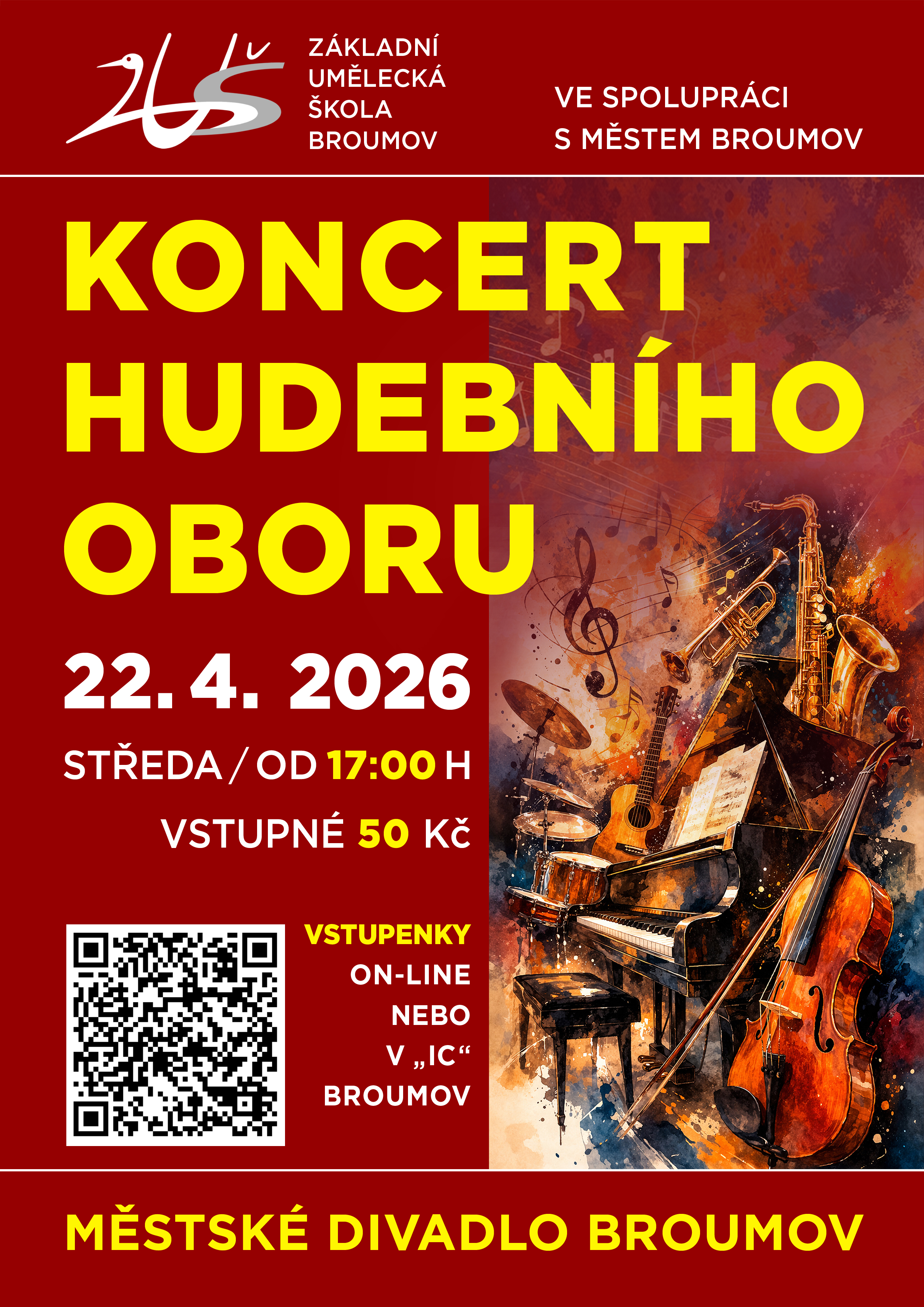 rádi bychom vás pozvali na Koncert hudebního oboru ZUŠ Broumov, který se koná ve středu 22. dubna